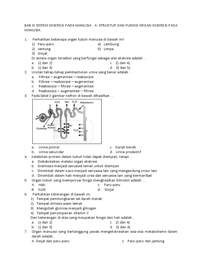 Contoh Soal Sistem Ekskresi Manusia Dan Kunci Jawabannya