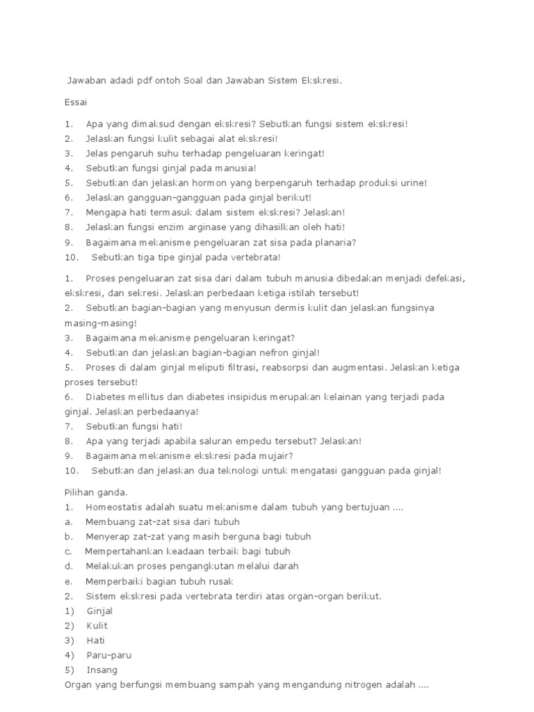 Ontoh Soal Dan Jawaban Sistem Ekskresi