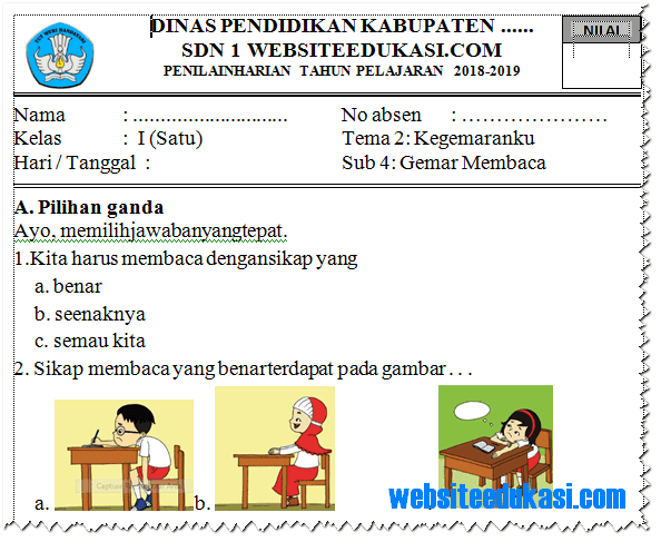Soal Ulangan Harian Terbaru Pai Sd Kelas 1 Pelajaran 5 Semester 1 Jurnal Edukasia
