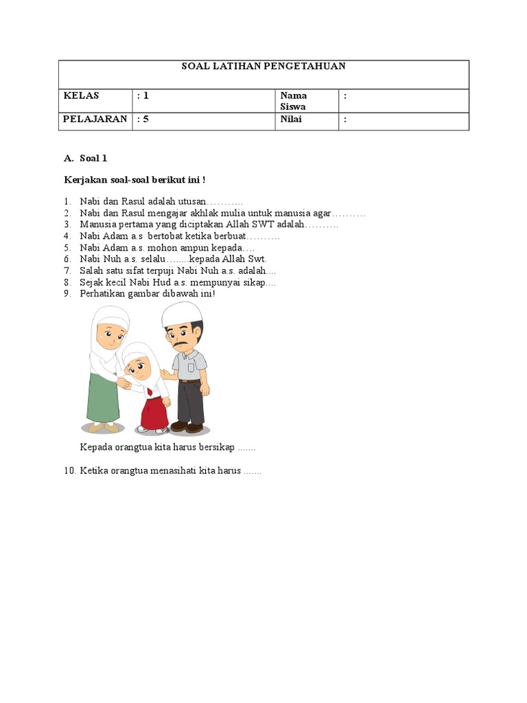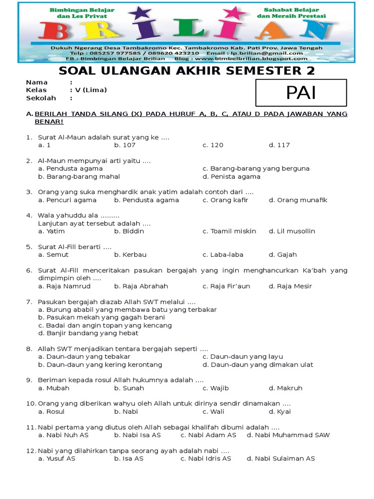 Berikut pembahasan dari Contoh Soal Latihan UTS dan PTS bagi siswa siswi Kelas 5 SD. Nabi Hud berdakwah untuk kaum Ad. Soal UAS Semester 1 TA 20172018 Mapel PAI SD Kelas 1 KLIK DISINI.