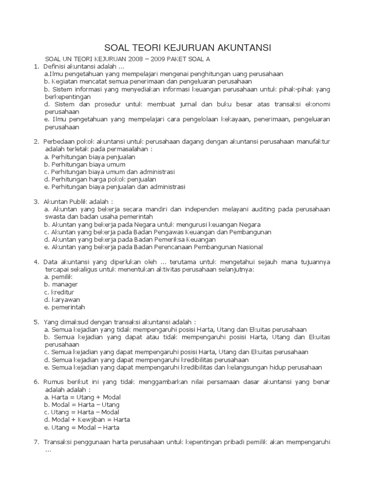 Soal Teori Kejuruan Akuntansi Paket A 2008 2009 Pdf
