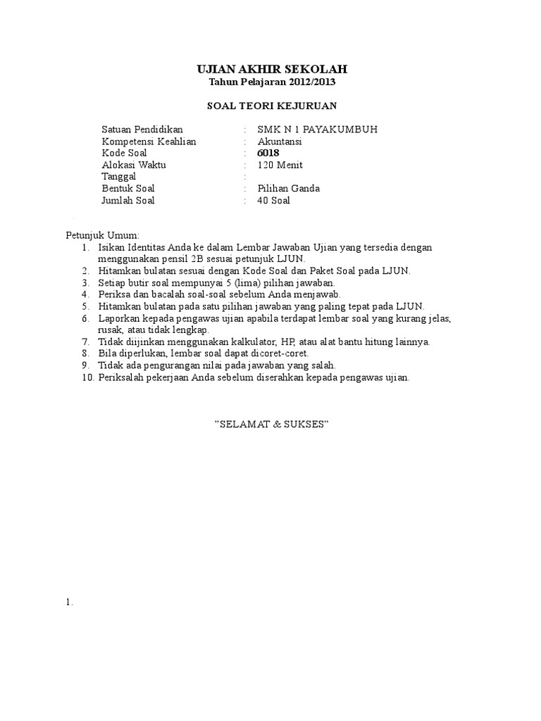 24Soal un teori kejuruan akuntansi smk 2013. Penugasan Perorangan Petunjuk. 13Berikut ini adalah Soal Teori Kejuruan Kompetensi Keahlian Akuntansi SMKUjian Nasional Tahun 2015 dengan Kode Soal 6018 semoga dapat bermanfaat bagi anda serta sukses dalam menjalani UN Teori Kejuruan SMK pada tahun ini.