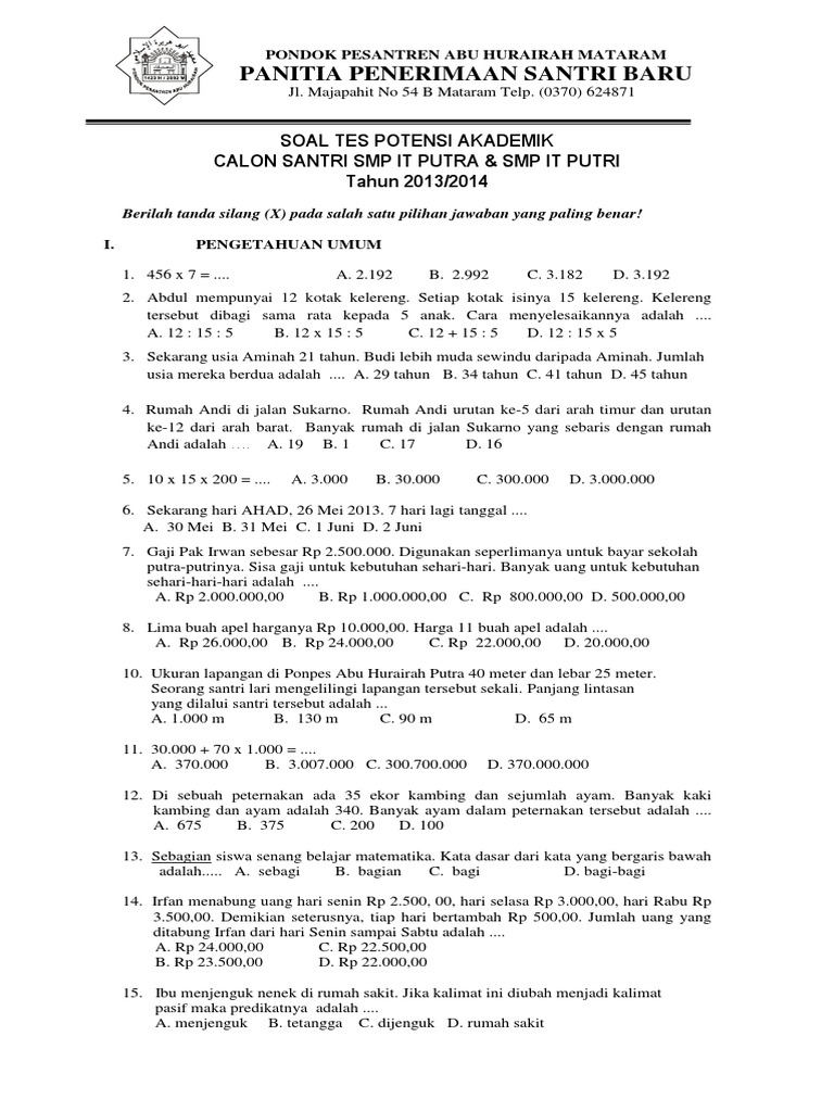 Download Soal Tes Masuk Mtsn Jawabanku Id