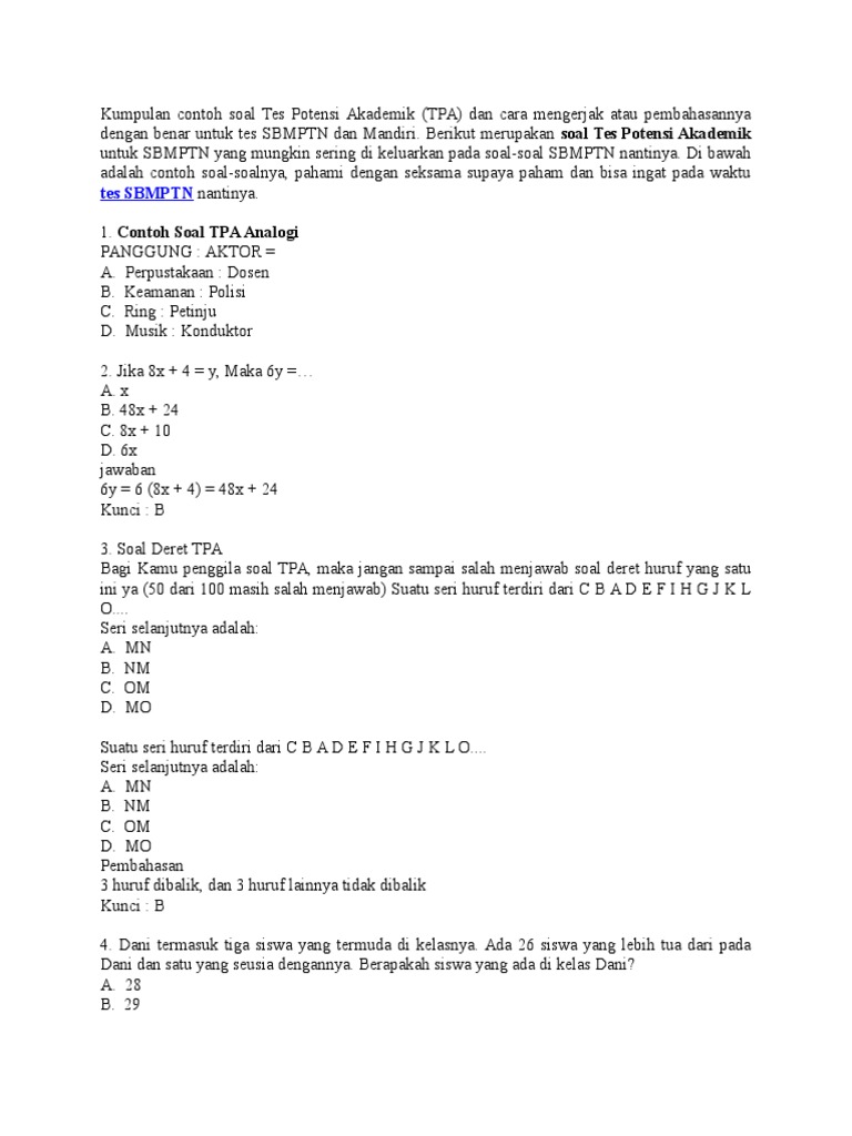 Soal Pg Tes Potensi Akademik Dan Kunci Jawaban Jawabanku Id