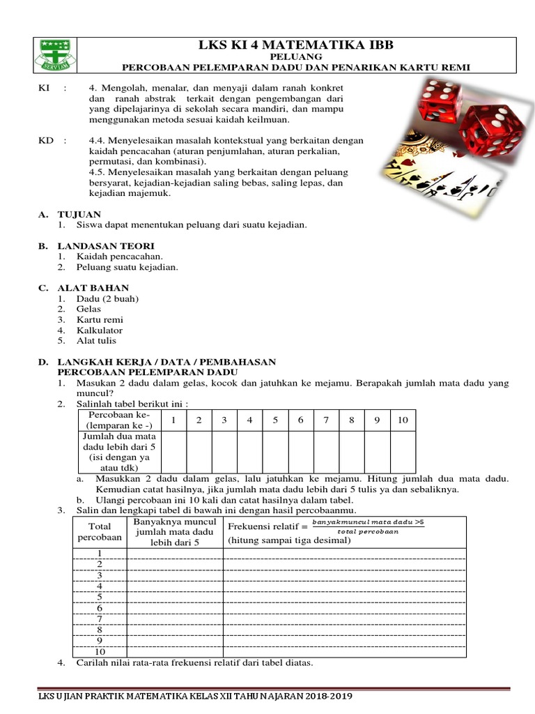 Lks Peluang Ujian Praktik Peluang Kelas Xii Pdf