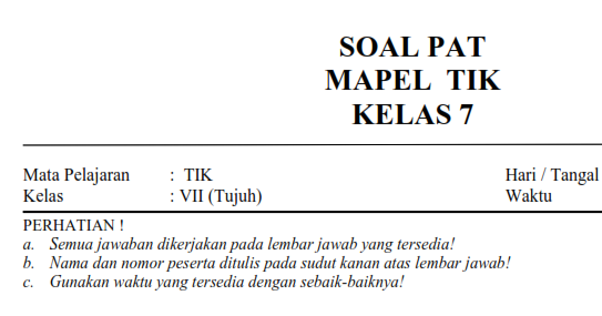 Soal Pat Tik Kelas 7 Anak Smp Mts