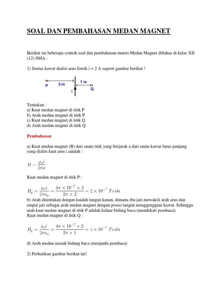 Contoh Soal Dan Pembahasan Medan Magnet Literatur