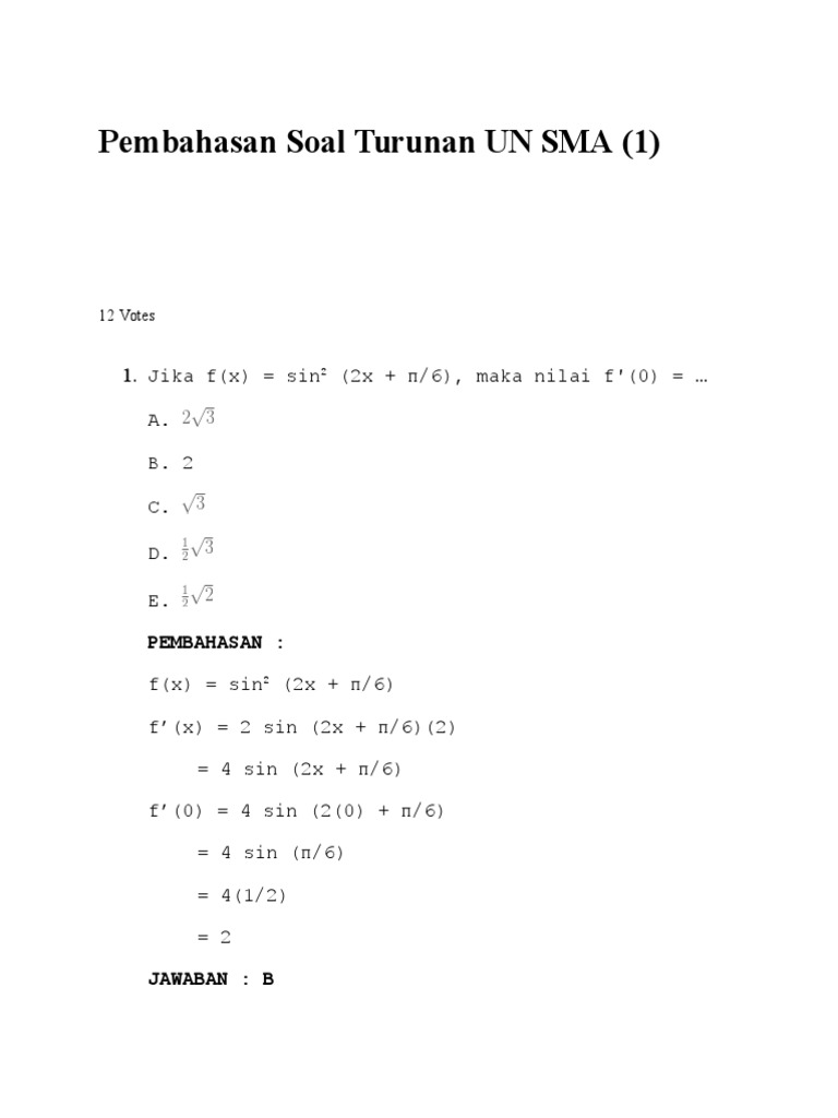 Kumpulan Soal Un Materi Turunan Jawabanku Id