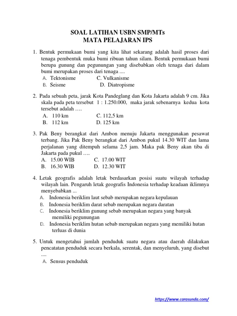 Soal Usbn Ips Smp Mts Beserta Kuncinya Panduandapodik Id