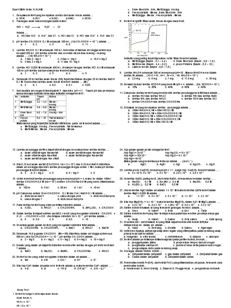Soal Uts Kimia Kelas X Xi Semester 2 Genap Dokumentasi Liestanti Anexia
