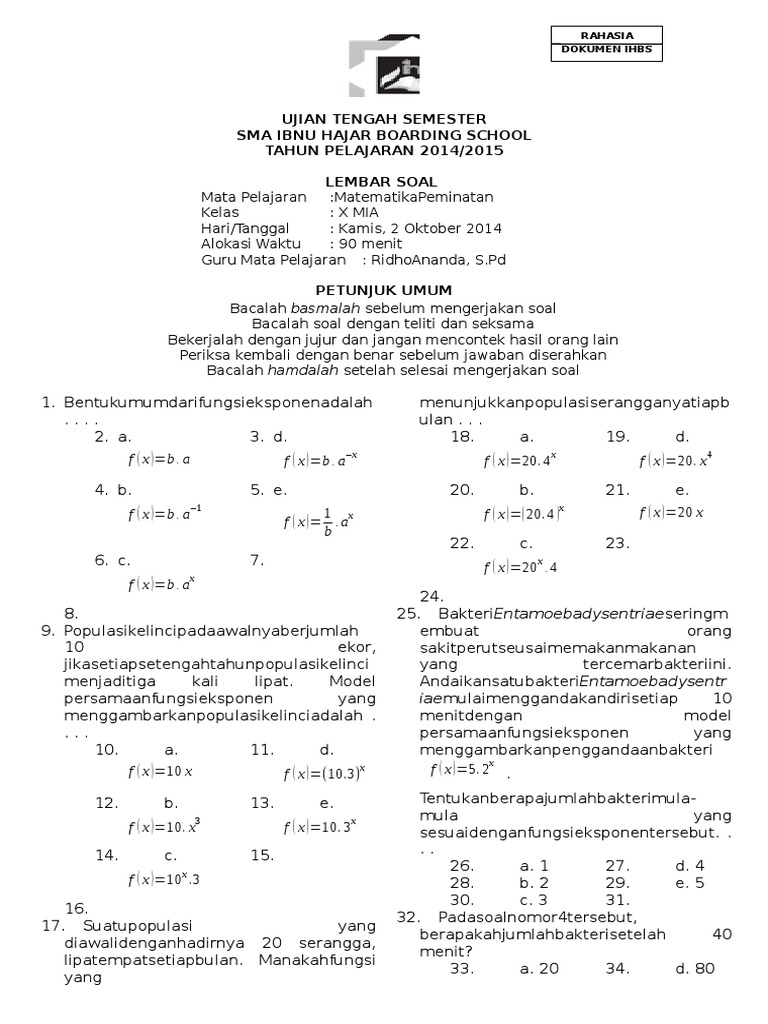 Soal Matematika Kelas X Peminatan